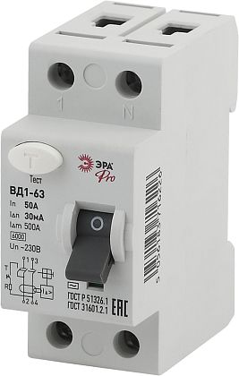 Выключатель дифференциального тока двухполюсный 50А 30мА тип AC ВД1-63 IEK
