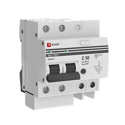 Дифференциальный автомат АВДТ-63 50А/ 30мА (хар-ка C, электронный тип A) 6кА EKF PROxima Дифференциальный автомат АВДТ-63 50А/ 30мА (хар-ка C, электронный тип A) 6кА EKF PROxima
