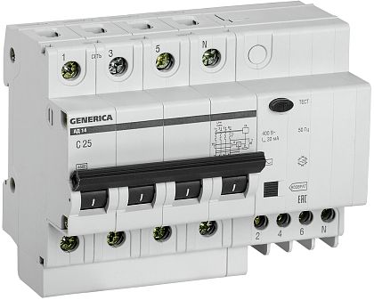 Выключатель автоматический дифференциального тока четырехполюсный C 25А 30мА тип AC 4.5кА АД-14 IEK