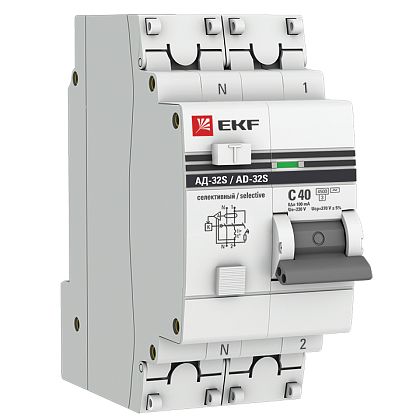 Дифференциальный автомат АД-32 1P+N 25А/30мА (хар. B, AC, электронный, защита 270В) 4,5кА EKF PROxima Дифференциальный автомат АД-32 1P+N 25А/30мА (хар. B, AC, электронный, защита 270В) 4,5кА EKF PROxima