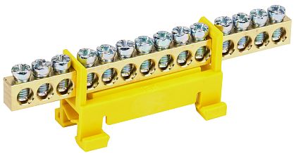 Шина PE "земля" на DIN-изоляторах ШНИ 8х12-16-Д-Ж  IEK Шина PE "земля" на DIN-изоляторах ШНИ 8х12-16-Д-Ж IEK