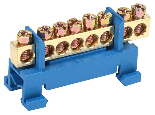 Шина "0" N (6х9мм) 10 отверстий латунь синий изолированный корпус на DIN-рейку EKF PROxima Шина "0" N (6х9мм) 10 отверстий латунь синий изолированный корпус на DIN-рейку EKF PROxima