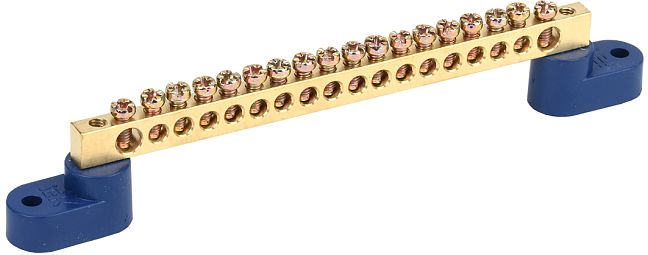 Шина "0" N (8х12мм) 8 отверстий латунь 2 синих угловых изолятора EKF PROxima Шина "0" N (8х12мм) 8 отверстий латунь 2 синих угловых изолятора EKF PROxima