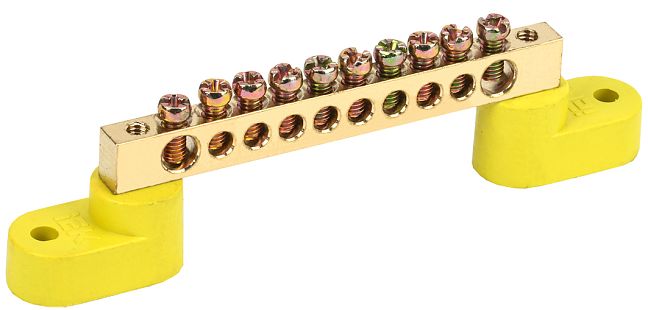 Шина PE "земля" ШНИ-6х9-10-У2-Ж на двух угловых изоляторах IEK (YNN10-69-10C2-K05)