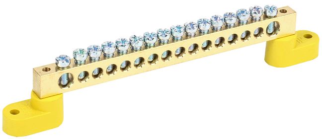 Шина PE "земля" ШНИ-8х12-16-У2-Ж на двух угловых изоляторах IEK (YNN10-812-16C2-K05)