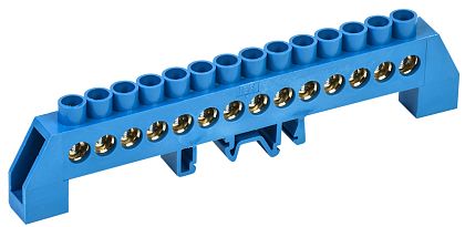 Шина "0" N (8х12мм) 8 отверстий латунь синий изолятор на DIN-рейку розничный стикер EKF  PROxima Шина "0" N (8х12мм) 8 отверстий латунь синий изолятор на DIN-рейку розничный стикер EKF PROxima
