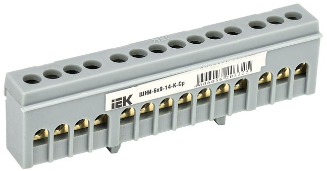 Шина L "фаза" в корпусном изоляторе на DIN-рейку ШНИ-6х9-14-К-Ср IEK (YNN10-69-14KD-K02)