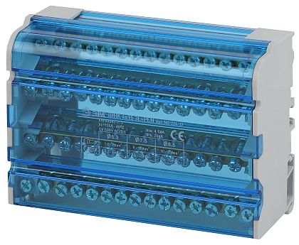 Шины выполнены из высококачественной латуни, изолирующая задняя панель и прозрачная защитная крышка выполнены из самозатухающего пластика. Применяются при комплектации щитового оборудования для подсоединения нулевого провода (нулевая рабочая шина), провода заземления и фазных проводников. Способы установки: - на монтажную DIN-рейку 35 мм; - на панель щита двумя винтами. Каждая шина отдельно изолирована. Кросс-модули изготавливаются с двумя или четырьмя шинами, рассчитанными на токи до 100 А и 125 А.
