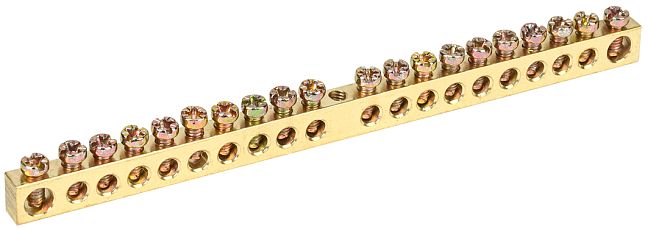 Применяются в щитовом оборудовании для подсоединения нулевых рабочих (N) и нулевых защитных проводов (РЕ). Крепление шины предусмотрено по центру (типы 8/1; 14/1) и по краям (типы 8/2 и 14/2) через изолятор нулевой шины на 35 мм монтажную DIN-рейку и через угловые изоляторы нулевой шины, а также непосредственно на панель щита. При подключении к шинам медных многожильных проводов рекомендуется оконцевание их наконечниками-гильзами. Выполнены из латуни.