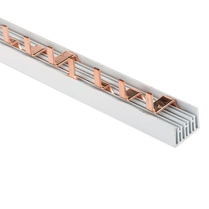 Применяются для удобного и безопасного соединения групп: ВА (выключатели автоматические), АД (автоматы дифференциальные), ВД (выключатели дифференциальные), ВН (выключатели нагрузки). Шины с шагом 18 мм предназначены для коммутации аппаратуры шириной, кратной одному модулю, шины с шагом 27 мм предназначены для коммутации изделий шириной, кратной полутора модулям. Шины, рассчитанные на номинальный ток 100 А, могут быть использованы с номинальным током 125 А, если вводной автомат подключать по центру. Для полуторамодульных шин имеются боковые заглушки.