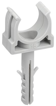 Держатель с защелкой и дюбелем СТ предназначен для крепления трубы. В комплекте держателя уже имеется дюбель с саморезом.