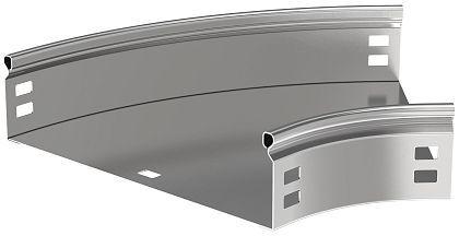 Поворот на 45 гр. 50х200 ИЭК///Поворот на 45° служит для организации горизонтального поворота кабельной трассы на 45°. Данный аксессуар поставляется в комплекте с крышкой. Все аксессуары для металлических лотков изготовлены из стали горячего цинкования методом Сендзимира (защитный слой цинка 10-20 мкм).