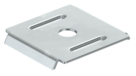 Площадка фиксаторная CR ИЭК///Системы подвесов для металлических лотков предназначены для монтажа металлических лотков (прокатных или проволочных) по элементам здания (потолок, стены, пол). Площадка фиксаторная CR служит для подвеса лотков на шпильке. Возможно использование для бокового крепления к стене или для соединения лотков.