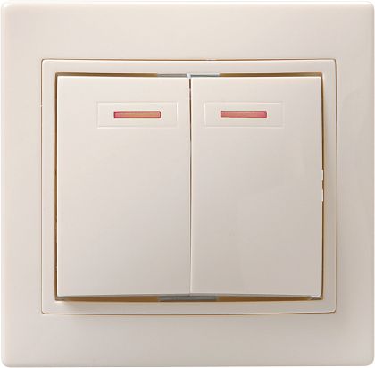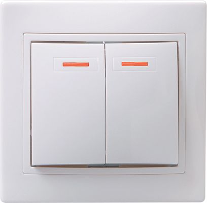 Выключатель двухклавишный СП Кварта 10А IP20 ВС10-2-1-КБ с индикацией белый IEK