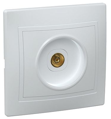Розетка телевиз. белый КВАРТА ИЭК///Классический дизайн, проверенный временем и востребованный различными категориями потребителей, позволяет устанавливать изделия серии "КВАРТА" в квартирах, загородных домах, офисных и производственных помещениях.