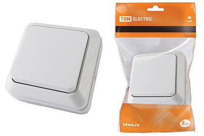 Переключатель на 2 направления 1-кл. открытой установки IP20 10А, белый "Дача" Народная TDM Переключатель на 2 направления 1-кл. открытой установки IP20 10А, белый "Дача" Народная TDM