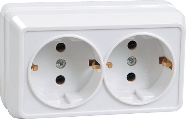 РС22-3-ОБ Розетка 2местная с заземлением 16А открытое устройство ОКТАВА (белый) IEK (ERO21-K01-16-DC)