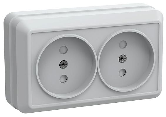 РСш22-2-ОБ Розетка 2местная без заземления с защитными шторками10А открытое устройство ОКТАВА (белый) IEK