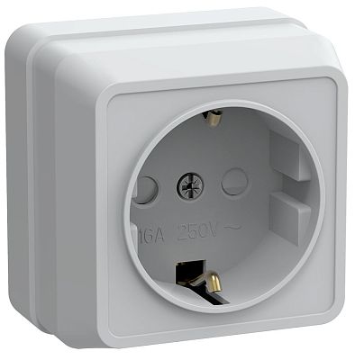 РСш20-3-ОБ Розетка 1местная с заземлением с защитными шторками 16А открытое устройство ОКТАВА (белый) IEK (ERO14-K01-16-DC)