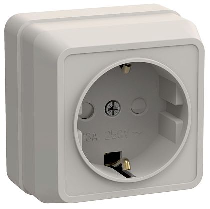 РСш20-3-ОБ Розетка 1местная с заземлением с защитными шторками 16А открытое устройство ОКТАВА (белый) IEK
