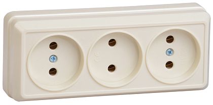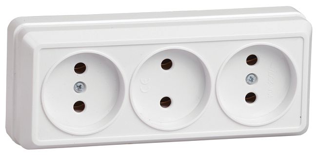 РС23-2-ОБ Розетка 3местная без заземления 10А открытое устройство ОКТАВА (белый) IEK