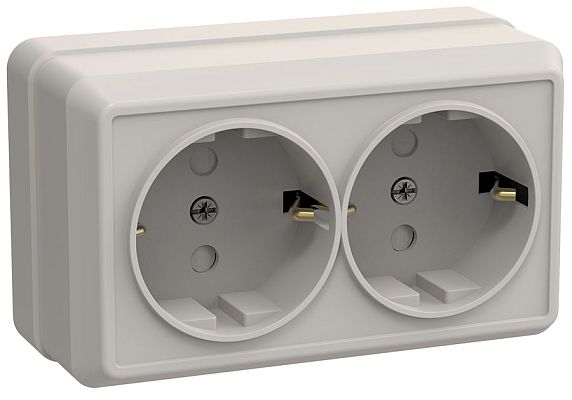 РСш22-3-ОКм Розетка 2местная с заземлением с защ. штор.16А открытое устройство ОКТАВА (кремовый) IEK