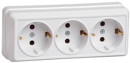 РС23-3-ОК Розетка 3местная с заземлением 16А открытое устройство ОКТАВА (кремовый) IEK