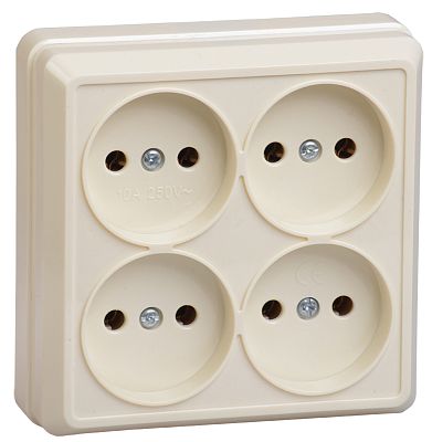 РС24-2-ОК Розетка 4местная без заземления 10А открытое устройство ОКТАВА (кремовый) IEK