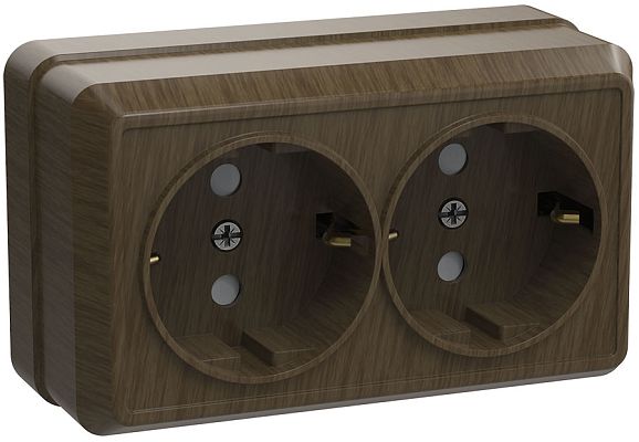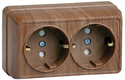 РС22-3-ОД Розетка 2местная с заземлением 16А открытое устройство ОКТАВА (дуб) IEK