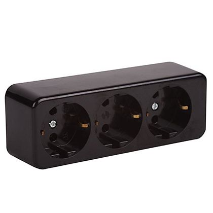 РС23-3-ОД Розетка 3местная с заземлением 16А открытое устройство ОКТАВА (дуб) IEK