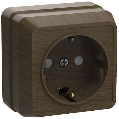 РСш20-3-ОД Розетка 1местная c заземлением и защитными шторками 16А открытое устройство ОКТАВА (дуб) IEK