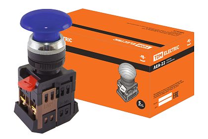 Кнопка AEА-22 "Грибок" синий d22мм 1з+1р IEK