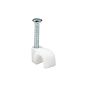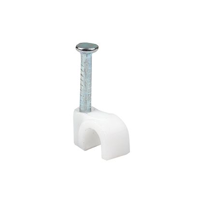 Скоба 4мм круглая пластиковая (1 уп = 100шт.) ИЭК///Предназначены для быстрого и надежного крепления круглых и плоских кабелей. Возможно крепление к дереву, прессованному картону и швам кирпичной кладки, к штукатурке, бетону, кирпичу. Изготовлены из гибкого негорючего ударопрочного полипропилена, гвоздь - закаленная оцинкованная сталь.