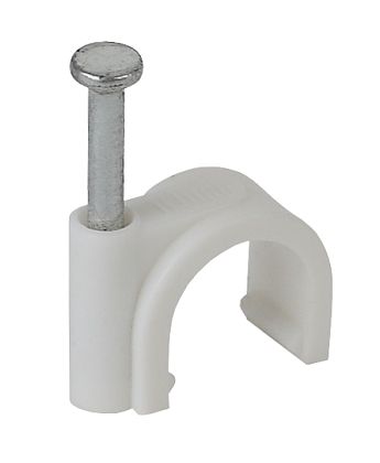 Скоба 18мм круглая пластиковая (1 уп = 100шт.) ИЭК///Предназначены для быстрого и надежного крепления круглых и плоских кабелей. Возможно крепление к дереву, прессованному картону и швам кирпичной кладки, к штукатурке, бетону, кирпичу. Изготовлены из гибкого негорючего ударопрочного полипропилена, гвоздь - закаленная оцинкованная сталь.