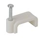 Скоба 6мм плоская пластиковая (1 уп = 100шт.) ИЭК///Предназначены для быстрого и надежного крепления круглых и плоских кабелей. Возможно крепление к дереву, прессованному картону и швам кирпичной кладки, к штукатурке, бетону, кирпичу. Изготовлены из гибкого негорючего ударопрочного полипропилена, гвоздь - закаленная оцинкованная сталь.