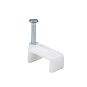 Скоба 12мм плоская пластиковая (1 уп = 100шт.) ИЭК///Предназначены для быстрого и надежного крепления круглых и плоских кабелей. Возможно крепление к дереву, прессованному картону и швам кирпичной кладки, к штукатурке, бетону, кирпичу. Изготовлены из гибкого негорючего ударопрочного полипропилена, гвоздь - закаленная оцинкованная сталь.
