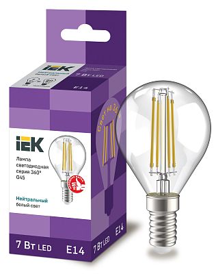 К светотехнике на любом объекте, будь то жилое помещение или коммерческая площадка, предъявляют высокие требования. Необходимо не только продумать конфигурацию всех приборов, безопасную схему подключения, суммарную мощность и нагрузку на сеть, но и учесть требования дизайна, поскольку эстетике сегодня уделяется большое внимание. Лампа светодиодная G45 шар прозр. 7Вт 230В 4000К E14 Filament IEK (LLF-G45-7-230-40-E14-CL) — современное решение, в котором учтены все требования. За надежность отвечают материалы с большим запасом прочности. Все элементы конструкции без проблем выдерживают интенсивную эксплуатацию. Такой вдумчивый подход к деталям является визитной карточкой бренда IEK.