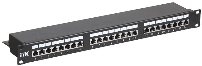 Коммутационные панели или патч-панели являются важнейшей частью любой СКС и IT-инфраструктуры здания и сооружения с большим количеством информационных розеток и терминальных портов конечных пользователей, которые необходимо коммутировать на порты активного сетевого оборудования, размещенного в серверных и распределительных узлах. В зависимости от способа крепления, масштабности кабельной системы, типа сети ITK изготавливает патч-панели для настенного монтажа или монтажа в 19-дюймовый конструктив, по количеству портов 12-, 24-, 48-, 50-портовых категорий, 3 (телефонные), 5E, 6, 6A с кабельным организатором или без него. Патч-панели для монтажа в 19" шкаф или стойку соответствуют стандарту 19" (482,6 мм), имеют отверстия с левой и правой стороны для крепления на профиль, производятся высотой 1 или 2 юнита. На передней стороне все патч-панели ITK имеют специальную площадку для дополнительной маркировки и цифровую нумерацию портов, на обратной стороне модули IDC имеют цветовую и цифровую нумерацию. Также для облегчения монтажа и укладки кабелей имеются изделия с кабельным органайзером спереди или сзади. Все патч-панели ITK категории 5Е UTP соответствуют международным стандартам UL 1863, ISO/IEC 11801:2002, TIA/EIA-568-B, кодировка проводников сзади в соответствии с T568B и A. Выпускаются двух модификаций: с кабельным организатором и без него, имеют спереди площадку для дополнительной маркировки, поставляются в картонной коробке с крепежом.