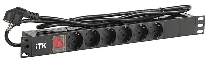 ITK PDU 7 розеток немецкий стандарт с выключателем 1U кабель 2м вилка ПВХ черный IEK