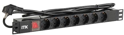 ITK PDU 7 розеток немецкий стандарт с LED выключателем1U, шнур 2м вилка IEK