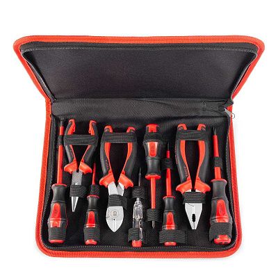 Для работы под напряжением до 1000 В Состав набора: изолированные пассатижи 180 мм изолированные бокорезы усиленные 180 мм изолированные длинногубцы 160 мм отвертка: шлиц 3х75 отвертка: шлиц 4х100 отвертка: шлиц 5.5х125 отвертка: филипс PH1x100 отвертка: филипс PH2x100 отвертка-индикатор Упаковка: тканевый водозащитный кофр Габариты упаковки: 340х260х40 мм Вес набора: 1.50 кг