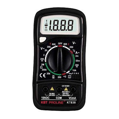 Залогом качественного электромонтажа является правильный выбор расходников и инструмента. Мультиметр цифровой KT 838 "PROLINE" КВТ (79128) — проверенное решение, с которым работа пойдет гораздо быстрее, а результат будет соответствовать строгим отраслевым стандартам и другим нормативным требованиям. Позиция 79128 пользуется спросом и у профессионалов, обслуживающих сложные и ответственные объекты, и у обычных пользователей, которые сталкиваются с аналогичными задачами в быту. Работать с товарами КВТ действительно просто, а их быструю доставку мы берем на себя.