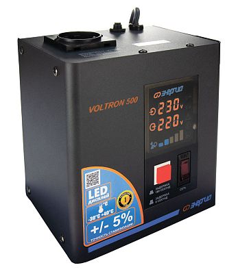 Стабилизатор напряжения Энергия Voltron 500 (5%) -релейный однофазный стабилизатор напряжения переменного тока предназначен для стабилизации переменного напряжения в сети электроснабжения для потребителей бытового и аналогичного назначения. Данная модель отличается широким диапазоном входного напряжения – от 95 до 280 вольт. Это позволяет получать стабильное напряжение даже в самых проблемных электросетях.