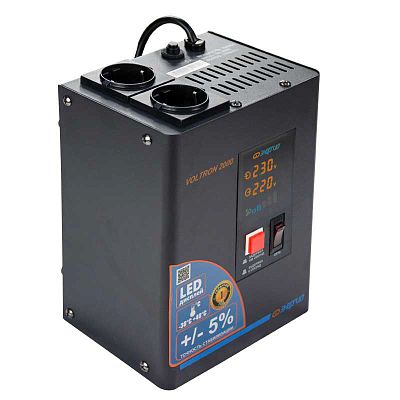 Стабилизатор напряжения Энергия Voltron 2000 (5%) -релейный однофазный стабилизатор напряжения переменного тока предназначен для стабилизации переменного напряжения в сети электроснабжения для потребителей бытового и аналогичного назначения. Данная модель отличается широким диапазоном входного напряжения – от 95 до 280 вольт. Это позволяет получать стабильное напряжение даже в самых проблемных электросетях.