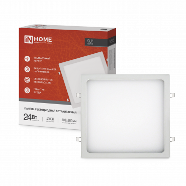 Панель светодиодная встраиваемая квадратная SLP 12Вт 230В 4000К 840Лм 171мм белая IP40 IN HOME Панель светодиодная встраиваемая квадратная SLP 12Вт 230В 4000К 840Лм 171мм белая IP40 IN HOME