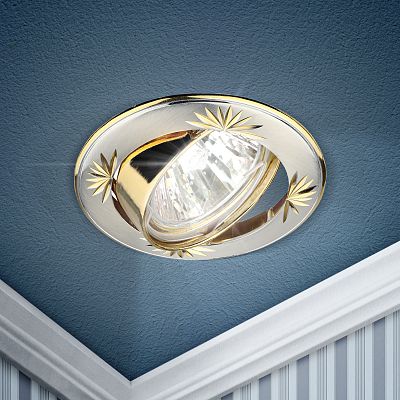 Светильник встраиваемый ЭРА KL3A SS/G литой круг поворотный с гравировкой MR16,12V/220V, 50W сатин/серебро/золото (C0043663)