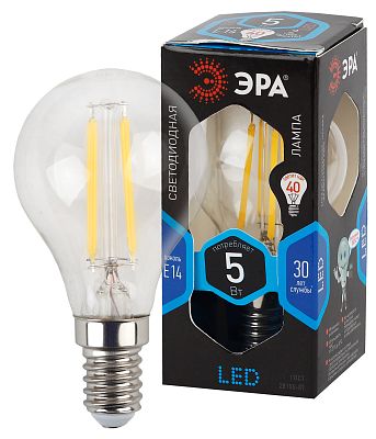 Лампа светодиодная ЭРА F-LED P45-5W-840-E14 филамент шар нейтральный белый свет (Б0019007)
