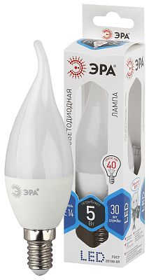 Лампа светодиодная ЭРА STD LED BXS-5W-840-E14 свеча на ветру нейтральный белый свет (Б0027968)