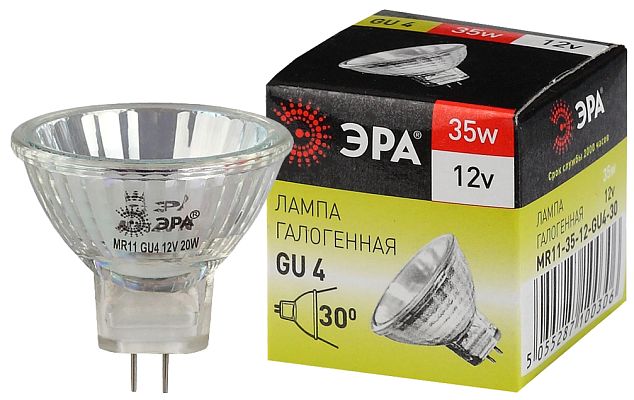 Лампы галогенные ЭРА GU4-MR11-35W-12V-30CL галоген, софит, 35Вт, нейтральный, GU4 (C0027362)