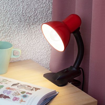 Настольный светильник ЭРА N-102-E27-40W-R Е27 на прищепке , красный